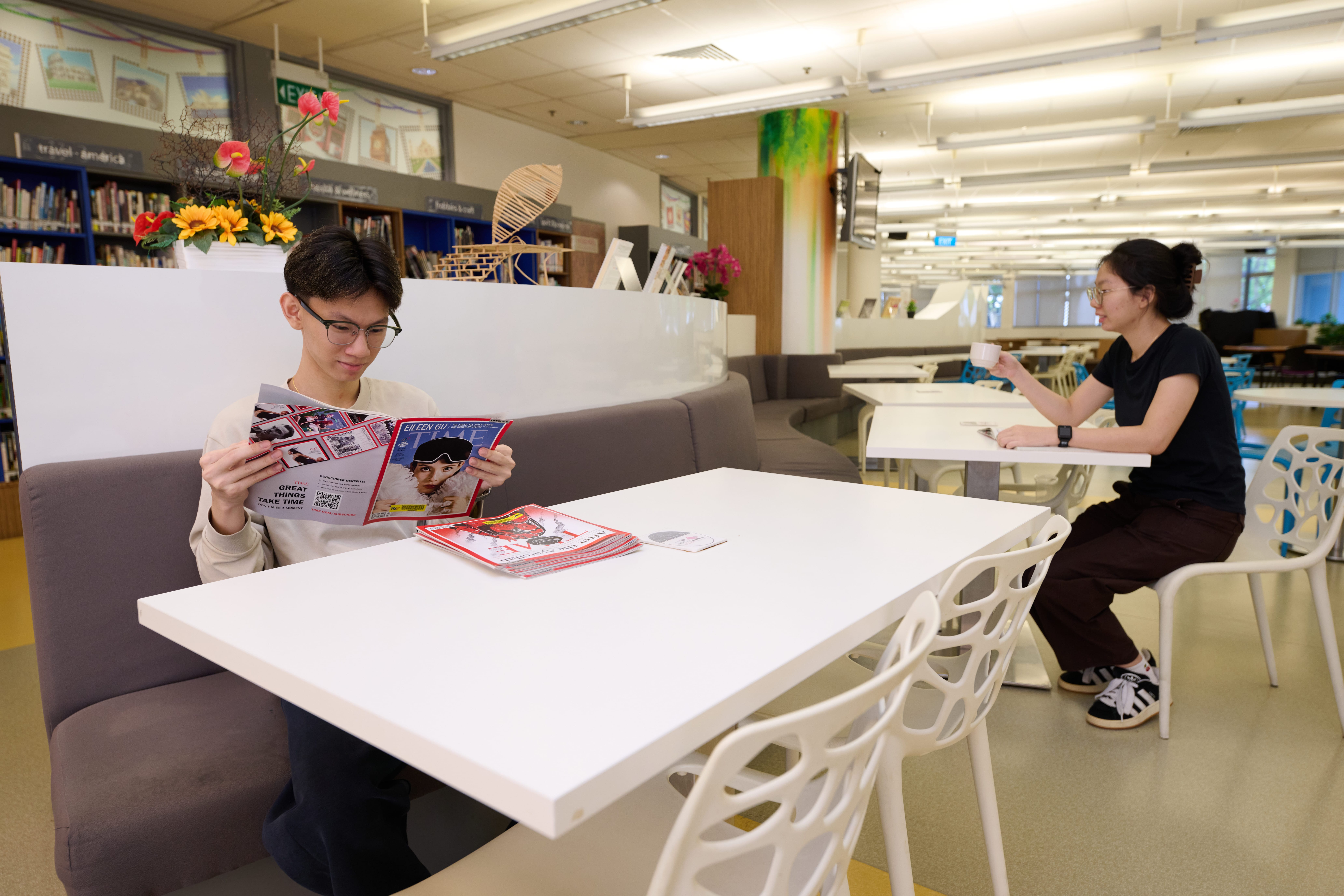 You can grab a bite and relax at the library cafe’s designated eating area on Level 4, Centre Wing.